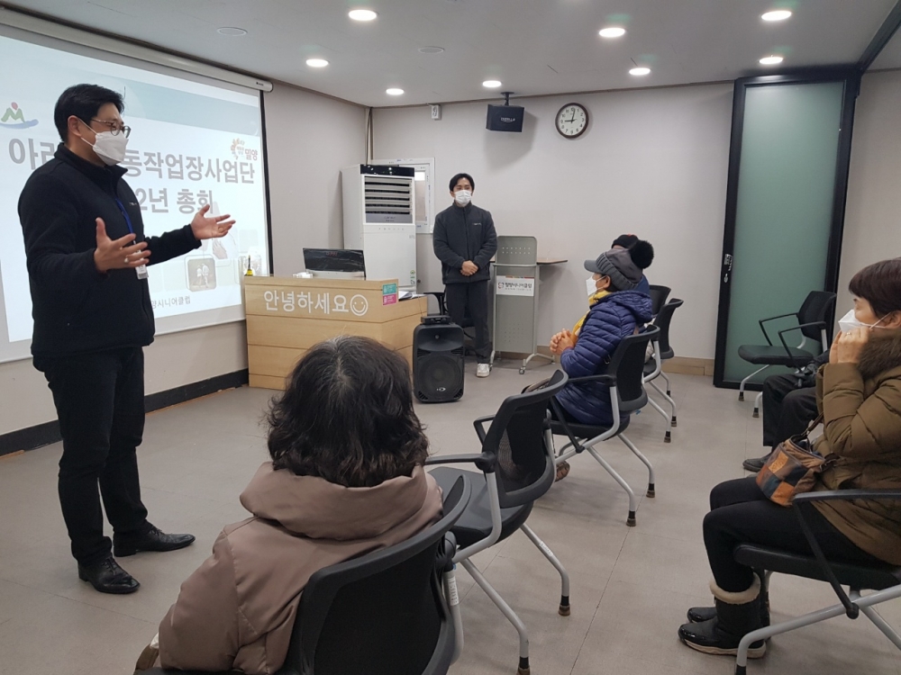 우리 밀양시니어클럽은 아리랑공동작업장사업단 참여어르신 총회를 실시하였습니다.