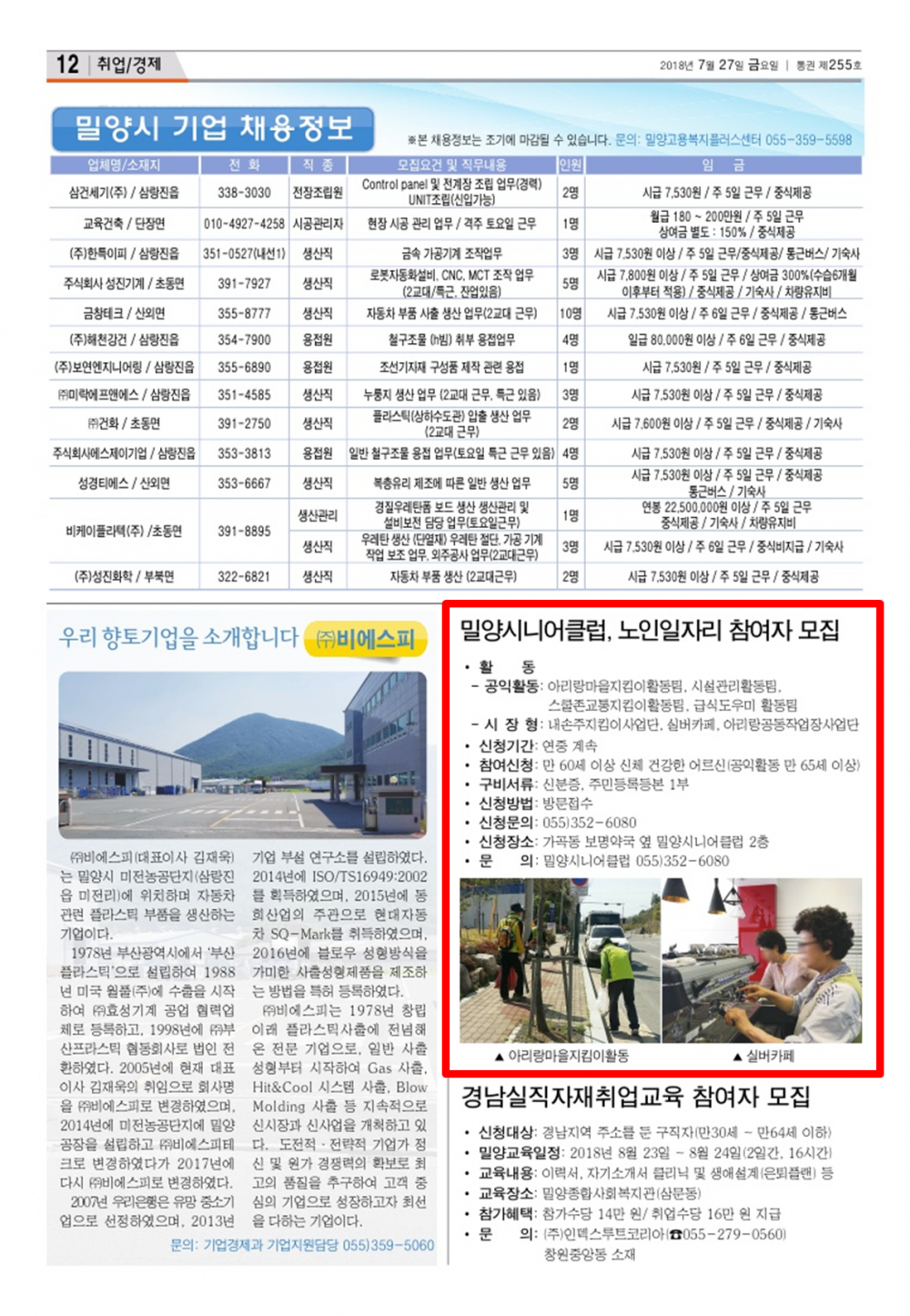 [밀양시보]밀양시니어클럽 노인일자리 참여자 모집