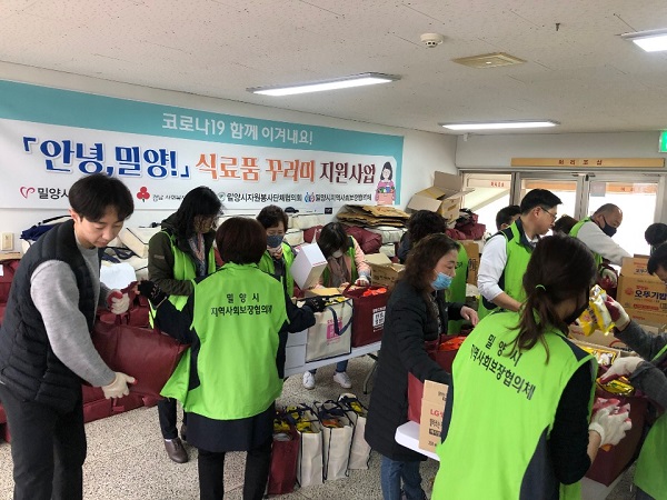 | 밀양시지역사회보장협의체 식료품 꾸러미 제작 행사 '안녕, 밀양' 참석 | |||