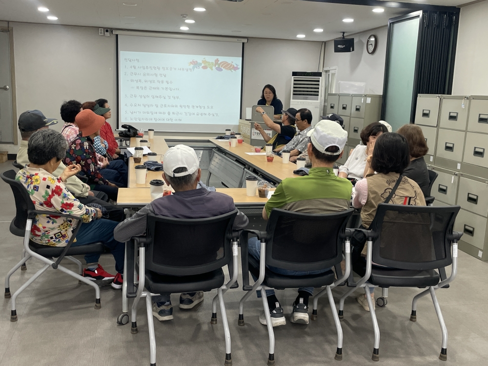우리 밀양시니어클럽은 먹거리통합지원센터 연계사업단 5월 참여어르신 간담회를 실시하였습니다.