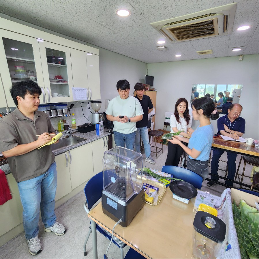 우리 밀양시니어클럽은 거창시니어클럽에 알로에쥬스 관련 홍보를 하였습니다.
