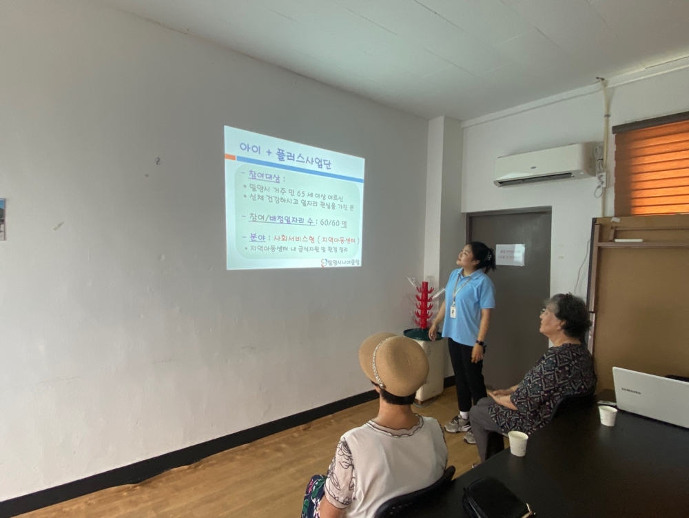 우리 밀양시니어클럽은 아이+플러스사업단 신규어르신 직무·소양교육을 실시하였습니다.