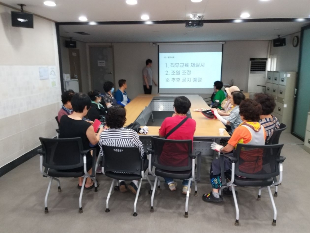 우리 밀양시니어클럽은 아리랑공동작업장사업단 8월 참여어르신 간담회를 실시하였습니다.