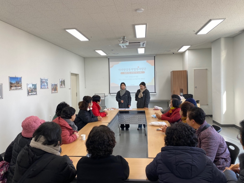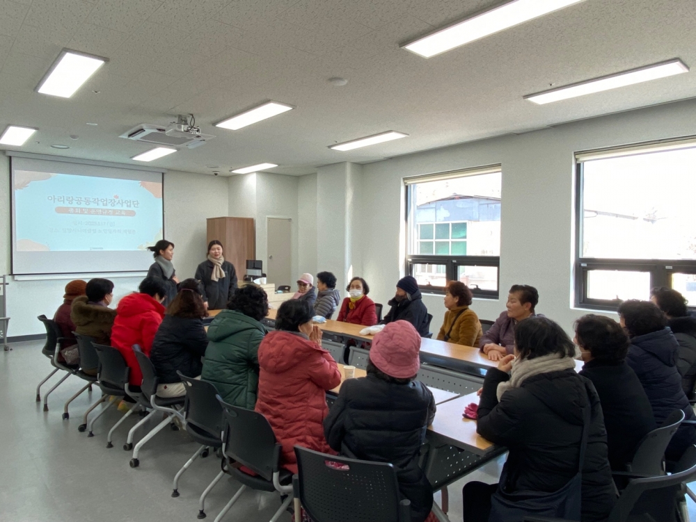 | 아리랑공동작업장사업단 참여어르신 총회 및 운영규정 교육 실시 | |||
