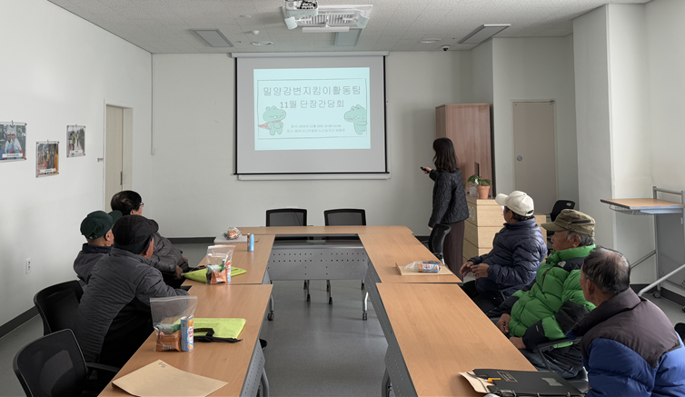 우리 밀양시니어클럽에서는 밀양강변지킴이 단장 간담회를 진행